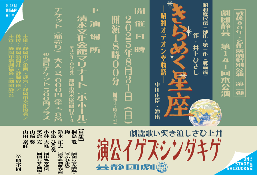 劇団静芸は昭和23年(1948)に創立、静岡に生まれ育てられて来た静岡市地域劇団です。